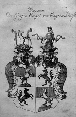 Kupferstich: Wappen der Grafen Engl von Wagrain | Der durchlauchtigen Welt vollständiges Wappenbuch | Autor/-in unbekannt Unknown author | Datei:Engl von Wagrain, Wappen.JPG | |
