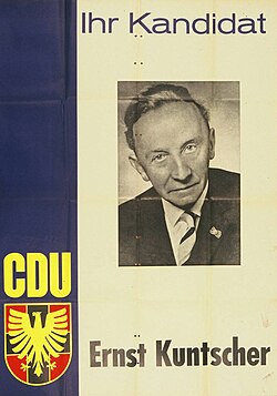 | Ihr Kandidat Abbildung : Porträtfoto Plakatart : Kandidaten-/Personenplakat mit Porträt Objekt-Signatur : 10-001: 1035 Bestand : Plakate zu Bundestagswahlen (10-001) GliederungBestand10-18 : Plakate zu Bundestagswahlen (10-001) » Die 4. Bundestagswahl am 17. September 1961 » CDU » Mit Porträtfoto Lizenz : KAS/ACDP 10-001: 1035 CC-BY-SA 3.0 DE | Diese Datei wurde Wikimedia Commons freundlicherweise von der Konrad-Adenauer-Stiftung im Rahmen eines Kooperationsprojektes zur Verfügung gestellt. | CDU | Datei:KAS-Kuntscher, Ernst-Bild-1907-1.jpg |