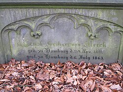 | Familiengrabmal Merck im Jacobipark in de:Hamburg-Eilbek , Epitaph für de:Ernst Merck (1811–1863) | Eigenes Werk | UweRohwedder | Datei:Familiengrab Merck - Ernst.jpg | |