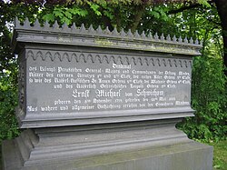 | Denkmal für den preußischen Festungskommandant Ernst Michael von Schwichow in Minden , Kreis Minden-Lübbecke , Nordrhein-Westfalen . Das Denkmal wurde vom preußischen Baumeister Karl Friedrich Schinkel gestaltet . | Diese Datei wurde mit Commonist hochgeladen. | TUBS | Datei:2010-05-21 Minden Schwichow Denkmal (6).jpg | |
