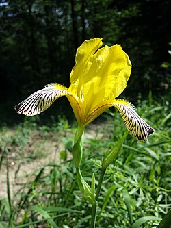 | Blüte Taxonym: Iris variegata ss Fischer et al. EfÖLS 2008 ISBN 978-3-85474-187-9 Fundort: Glasweiner Wald zwischen Bergau und Füllersdorf, Bezirk Korneuburg, Niederösterreich - ca. 310 m ü. A. Standort: trocken-warmer Wald | Eigenes Werk | Stefan.lefnaer | Datei:Iris variegata sl68.jpg | |