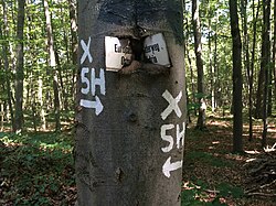 | Fernwanderwegkreuz Steirischer Seeberg von Carl Hermann . "Hier teffen sich die beiden Europäische Europäischen Fernwanderwege Pyrenäen - Jura - Neusiedlersee E4 und Ostsee - Wachau - Adria E6, mögen sie die Völker verbinden." | Eigenes Werk ( Panoramafreiheit ) | Mayer Bruno | Datei:FernwanderkreuzSeeberg.jpg | |