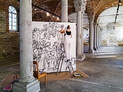 | Evelyn Kreinecker bei der Arbeit an einer Kohle-Zeichnung wärend ihrer Ausstellung VIVID in der Hipp-Halle Gmunden (Österreich) | Eigenes Werk | Robert Wetzlmayr | Datei:Evelyn Kreinecker während ihrer Ausstellung VIVID in der Hipp-Halle Gmunden (Österreich).jpg |