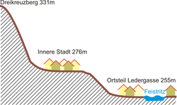Die einzelnen Stadtteile, wie die innere Stadt, in der die Patrizierbürger wohnten, die Ledergasse, die bereits im 15. Jahrhundert besiedelt war, die Grazer Vorstadt, deren Ausbau im 16. Jahrhundert begann, die Ungarvorstadt, Mitterbreiten, Mühlbreiten und Gerichtsbergen führten immer ein gewisses Eigenleben, was sich teilweise heute noch in gewissen Vereinen oder Traditionen zeigt. Die Ledergasse besaß bis in das 18. Jahrhundert hinein sogar einen eigenen Richter.
