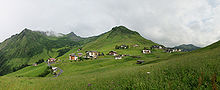 | Blick vom Fusse des Zafernhornes im Ortsgebiet von Fontanella - Faschina auf links das Sonnenköpfle 1877m, der markante Spitz in der Bildmitte: der höchste Berg des Bregenzerwaldgebirges das Glatthorn 2133m der Hahnenkopf 1772m und ganz rechts den Gipfel der Damülser Mittagsspitze . | Eigenes Werk | böhringer friedrich | Datei:Faschina Sommer Panorama.jpg | |
