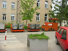 | Narrow gauge railroad (Feldbahn) in Geriatriezentrum Lainz, Vienna, Austria | Eigenes Werk | NVO | Datei:Narrow gauge railroad - Geriatriezentrum Lainz 07.jpg | |