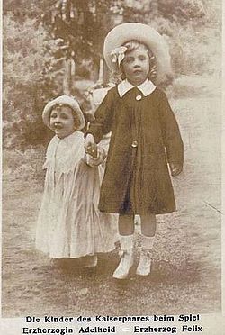 | Erzherzogin Adelheid von Habsburg-Lothringen (1914-1971), rechts | Pinterest: https://de.pinterest.com/pin/411023903462270297/ | zeitgenössischer Fotograf, 1918 | Datei:Erzherzogin Adelheid 1918.jpg | |