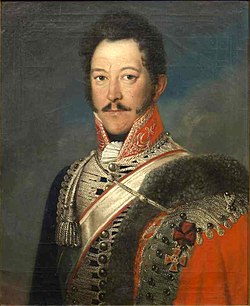 | Aus noch unidentifierzierter Hand stammt dieses Ölgemälde wohl nach der Schlacht bei Waterloo und der Erhebung des vormaligen Kurfürstentums zum Königreich Hannover um 1815 geschaffene Ölgemälde eines noch unidentifizierten Künstlers. Es zeigt den Oberst des von dem Prinzregenten von Großbritannien, Irland und Hannover und späteren König Georg IV. 1813 gegründete Husarenenregiments und späteren hannoverschen Kriegsminister Ferdinand Graf von Kielmansegg . Das Brustbild in Öl auf Leinwand hat die Maße circa 67 cm x 56 cm ... | https://lot-tissimo.com/de/deutscher-portraetmaler-taetig-um-1815-brustportraet-von-ferdinand-graf-von/_/i/16701803/p/96/ | noch unidentifizierter Maler | Datei:1815 circa unidentifizierter Maler Brustbild Ferdinand Graf von Kielmansegg.jpg | |