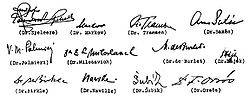 | International Katyn Commission Findings. Der Massenmord in Walde von Katyn Ein Tatsachenbericht (the Mass-Murder in the Katyn Forest, a Documentary Account of Evidence). Germany, 1943. Signatures of the commission: Marko Markow, Reimond Speleers, Herman Maximilien de Burlet, František Šubík, Helge Tramsen, Arno Saxén, Vincenzo Mario Palmieri, Eduard Miloslavić, Alexandru Birkle, Ferenc Orsós, François Naville, Andrej Žarnov, František Hájek | http://www.warsawuprising.com/doc/katyn_documents1.htm | International Katyn Commission | Datei:Katyn-1943-04-30.jpg | |