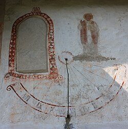 | Filialkirche "Hl. Sebastian" - Sonnenuhr Ort: Aich/Dob Gemeinde: Bleiburg | Eigenes Werk | Mefusbren69 | Datei:Aich-Dob - Kirche - Sonnenuhr.jpg | |