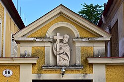 | Pfarrhof | Eigenes Werk | Haeferl | Datei:Baden - Pfarrhof Helenenstraße - Toraufsatz.jpg | |