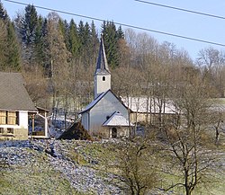Das Gotteshaus ist ein kleiner romanischer Bau mit einem Langhaus aus dem 13. oder frühen 14. Jahrhundert, einem leicht eingezogenen, gerade geschlossenen Chor und einem verputzten Dachreiter mit Spitzhelm. Das rundbogige Westportal besitzt eine Tür mit Bandbeschlag und wird von einem Vordach geschützt. Über dem Vordach befindet sich ein gotisches Dreipassfenster. An der Südwand haben sich ein Weltgerichtsfresko in zwei Registern und ein Christophorusfresko aus der Mitte des 14. Jahrhunderts erhalten.