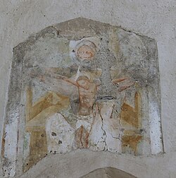 An der Südseite befinden sich Reste eines großflächigen Freskos aus der Mitte des 16. Jahrhunderts: zu erkennen sind oben Gottvater, darüber Girlanden und Engel. An der rechten Seite ist die Stifterin dargestellt, von einem Franziskaner als Fürbitter begleitet.[3]