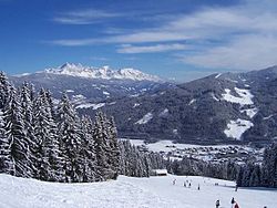 | Flachau, Blick vom Berg herunter, im Hintergrund das Dachsteinmassiv. | Eigenes Werk | JFKCom | Datei:Flachau.jpg | |