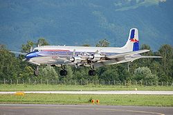 | DC6 of Flyingbulls landing runway 35 at LOWS (Salzburg) | Eigenes Werk | Rudolf Schider | Datei:DC6-Redbull.jpg | |
