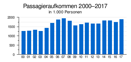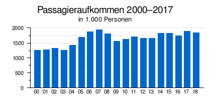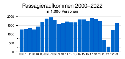 | Betriebsjahr | Fluggastaufkommen | Luftfracht [t] | Flugbewegungen |