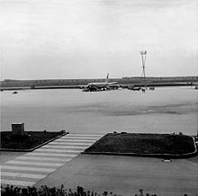 Von Dezember 1954 bis Mai 1955 fand ein Ideenwettbewerb für einen Generalausbauplan statt, um die Abfertigungsanlagen auf den zu erwartenden Luftverkehr der folgenden Jahrzehnte vorzubereiten. Wesentlichste Projekte darin waren die Verlängerung der Piste und der Bau eines neuen Terminalgebäudes. Am 27. März 1956 erteilte das Verkehrsministerium die Bewilligung zur Errichtung und zum Betrieb eines für den allgemeinen Verkehr bestimmten Flughafens. Die damals einzige Start- und Landebahn wurde 1954/1955 auf 2000 m, 1959 auf 3000 m und 1997 auf 3500 m verlängert. Das neue Abfertigungsgebäude, das heutige Terminal 2, wurde von 1956 bis 1960 errichtet[11] und am 17. Juni 1960 eröffnet. In diesem Jahr wurden rund 409.000 Passagiere gezählt.