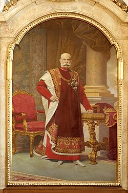 | Kaiser Franz Joseph 1903 bei der Eröffnung des Hauses der Wiener Kaufmannschaft am Wiener Schwarzenbergplatz. Das Gemälde des Kaisers ziert den Festsaal des Hauses. | Eigenes Werk | Aenderung WiKi | Datei:Gemälde Kaiser Franz Joseph 104 0449 RT8.jpg | |