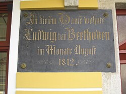 | Die Gedenktafel auf dem Hause in Franzensbad, wo Beethoven im Sommer 1812 lebte | Eigenes Werk | Gortyna | Datei:Beethoven Františkovy Lázně1.jpg | |