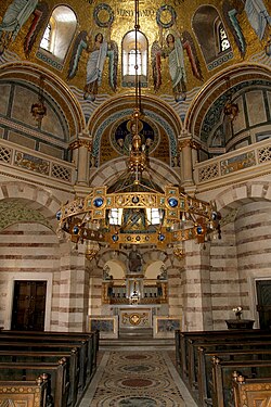 Das unerwartet hohe Spendenaufkommen von 348.348 Kronen erlaubte, die Kapelle statt mit Freskogemälden mit Mosaiken auszuschmücken und die Wandverkleidung anstatt in Stuck in Marmor auszuführen. Die Mosaikentwürfe stammen von Carl Ederer.[12] In der Wölbung der Altarapsis befindet sich ein großes Mosaik der heiligen Elisabeth von Thüringen.