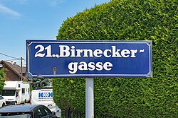 Straßenschild Birneckergasse in der Siedlung Bruckhaufen in Wien-Donaufeld. | Eigenes Werk | Funke | Datei:20210620 Bruckhaufen Birneckergasse Straßenschild.jpg | |
