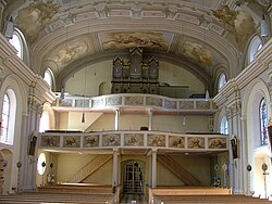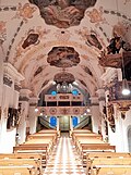 | Landeck, Tirol, Österreich. Katholische Pfarrkirche Mariä Himmelfahrt, Mittelschiff mit Westempore Dieses Bild zeigt das in Österreich unter der Nummer 88486 denkmalgeschützte Objekt. ( Commons , de , Wikidata ) | Eigenes Werk | Giorgio Michele | Datei:Mariä Himmelfahrt Landeck Innenraum West (cropped).jpg | |