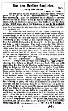 | Rezension zu einer Ausstellung von Franz Winninger | Zeitungsausschnitt | Otto Ernst Hesse , † 16. Mai 1946 | Datei:Winninger 01.JPG |