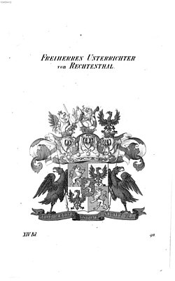 - Constantin von Wurzbach: Unterrichter Freiherr von Rechtenthal, Franz. In: Biographisches Lexikon des Kaiserthums Oesterreich. 49. Theil. Kaiserlich-königliche Hof- und Staatsdruckerei, Wien 1884, S. 96 f. (Digitalisat).