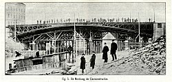 | Bau der 1945 zerstörten Franzensbrücke über den Donaukanal in Wien | Zeitschrift des Österreichischen Ingenieur- und Architekten-Vereins, Wien, 4. Mai 1900 | unbekannter Fotograf | Datei:GuentherZ Franzensbrücke (1898 – 1945) 0004.jpg |