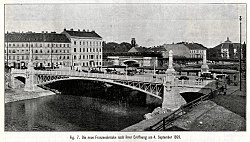 | Bau der 1945 zerstörten Franzensbrücke über den Donaukanal in Wien | Zeitschrift des Österreichischen Ingenieur- und Architekten-Vereins, Wien, 4. Mai 1900 | unbekannter Fotograf | Datei:GuentherZ Franzensbrücke (1898 – 1945) 0003.jpg | |