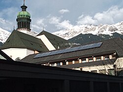| Diese Datei zeigt das im Tiroler Kunstkataster erwähnte Objekt mit der ID 121955 . ( auf tirisMaps , PDF , weitere Bilder auf Commons , Wikidata ) | Eigenes Werk | Luftschiffhafen | Datei:Franziskanerkloster Innsbruck 01.jpg | |