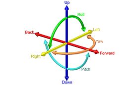 | The six degrees of freedom three dimensions and three rotations. The texts are located on the positive direction according to the right hand rule. | Eigenes Werk | GregorDS | Datei:6DOF.svg | |