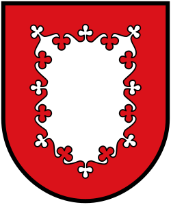 - „Ein silberner, im Kleeblattschnitt rot bordierter Schild“. [31]
