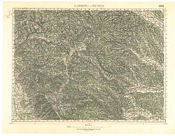 | historische Landkarte: franzisco-josephinische (3.) Landesaufnahme der österreichisch-ungarischen Monarchie. Blatt D.Landsberg und Wolfsberg, Steiermark, Österreich. Nr. 5254. Zone 18 Kolumne XII. | Österreichische Nationalbibliothek, Kartensammlung | Geripp: Oberleutnant Kimlein. Terrain: Hauptmann Pönisch. | Datei:Deutschlandsberg und Wolfsberg 5254.jpg | |