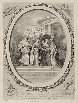 | Paix rendue à l'Europe en mille sept cent soixante et trois et publiée à Paris le XXI juin même année / Pax Europae Reddita ANNO M.DCC.LXIII. Graveur: Jean-Baptiste Tilliard (1740-1813) Zeichner: Monnet | Europeana: https://www.europeana.eu/portal/en/record/9200365/BibliographicResource_1000055597687.html?q=paix+paris+1763 | Jean-Baptiste Tilliard (1740-1813) | Datei:Pax Europae Reddita 1763.jpg | |