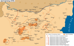 Um einen Kriegseintritt Russlands zu verhindern, berief 1876 der damalige britische Premierminister Lord Disraeli die Konferenz von Konstantinopel ein, die sich mit der Zukunft der Balkanvölker befasste. Dabei schlugen die europäischen Politiker eine Reihe von Reformen im Osmanischen Reich vor. In Bezug auf Bulgarien wurden die Möglichkeit der Autonomie und die Grenzen einer oder mehrerer künftiger autonomer bulgarischer Provinzen innerhalb des Osmanischen Reiches diskutiert. Sultan Abdülhamid II. weigerte sich jedoch, einen von vier Punkten, der die Einschränkung seiner Souveränität betraf, anzunehmen.