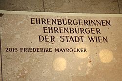 - ↑ Friederike Mayröcker ist Ehrenbürgerin der Stadt Wien. In: Wien.gv.at. Rathauskorrespondenz vom 3. Juni 2015, abgerufen am 5. Juni 2021.