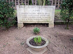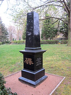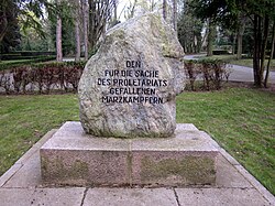 Für die Gefallenen der Märzunruhen 1920 wurde auf dem Friedhof als Gedenkstein ein Findling auf einem Sockel aufgestellt. Dessen Inschrift lautet DEN FÜR DIE SACHE DES PROLETARIATS GEFALLENEN MÄRZKÄMPFERN. Für die drei während der Unruhen getöteten Polizisten existiert ein separater Gedenkstein, dessen Inschrift Namen und Dienstgrade nennt. Davor befindet sich eine steinerne Schale.