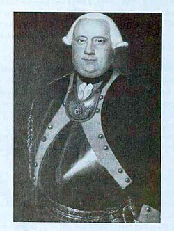 | Porträt des Oberst Voit von Salzburg, Führer der 1777 von Markgraf Alexander von Ansbach gegen die Amerikaner an England in Sold gegebene zwei Infanterie-Regimenter und Jäger, Original im Bayrischen Armeemuseum in Ingolstadt | Yorktown Surrender Flag--Symbolic Object, https://ia800300.us.archive.org/BookReader/BookReaderImages.php?zip=/23/items/yorktownsurrende001989/yorktownsurrende001989_jp2.zip&file=yorktownsurrende001989_jp2/yorktownsurrende001989_0026.jp2&scale=3&rotate=0 | Unbekannter Maler | Datei:F.A.V.Voit von Salzburg.jpg |
