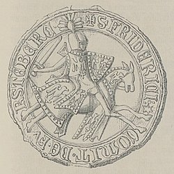 | Reitersiegel des Grafen Friedrich I. von Fürstenberg | Sigmund von Riezler: Geschichte des Fürstlichen Hauses Fürstenberg und seiner Ahnen bis zum Jahre 1509. Tübingen 1883, S. 221 online bei der UB Düsseldorf | Autor/-in unbekannt Unknown author | Datei:Siegel Gf Friedrich I v Fuerstenberg.jpg | |