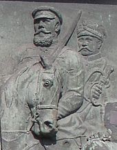 | Prinz Friedrich Carl (und vermutlich Steinmetz, der Löwe von Nachod ??) beobachten ein wüstes Reitergefecht, das die Schlacht bei Nachod darstellen soll. Detail aus dem Relief 1866 von Moritz Schulz an der Berliner Siegessäule | Image:Siegessäule R4.1.JPG | Sculptor: Moritz Schulz Photographer: Achim Raschka Cropper ( Seher ): Mutter Erde | Datei:Moritz Schulz-Prinz Friedrch Carl.jpg | |