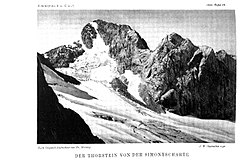 | Der Thorstein von der Simonyscharte aus Zeitschrift des Deutschen und Oesterreichischen Alpenvereins 1881 Band 12 | austrian literature online | Friedrich Simony | Datei:Der Thorstein von der Simonyscharte.jpg | |