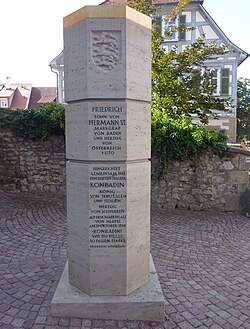 | Stauferstele Besigheim mit Inschrift zu Friedrich von Baden-Österreich | Eigenes Werk | Geak | Datei:Stauferstele Besigheim.jpg |