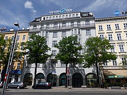 Das heute als Hotel Motel One genutzte Gebäude wurde 1912 von Hans Prutscher errichtet. Es ist im secessionistischen Stil geschaffen und reicht mit seinen zwei Trakten um einen Innenhof bis zur Elisabethstraße. Die Fassade wird durch zwei polygonale mehrgeschoßige Erker beherrscht, die symmetrisch angeordnet sind. Das fünfte Obergeschoß darüber zeigt Rundbogenfenster mit tiefen Kappen und Putzfelderdekor. Ein ursprünglicher Attikagiebel ist nur mehr an der Seite zur Elisabethstraße erhalten, an der Friedrichstraße durch einen Dachausbau verloren. Im Souterrain befand sich ein 1920 geschaffener Veranstaltungssaal, der bis 2012 als Opern-Kino in Betrieb war. Im Inneren sind noch originale Geländer und verglaste Türen mit secessionistischem Gitter zu sehen. Das Haus steht unter Denkmalschutz.