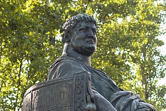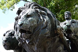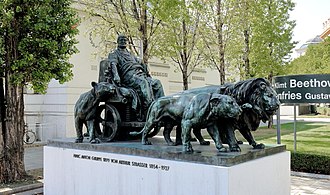 In der Gartenanlage neben der Seitenfront der Secession steht das Denkmal der Marc-Anton-Gruppe, das 1899/1900 von Arthur Strasser geschaffen wurde. Es handelt sich um eine Bronzegruppe, stilistisch am Übergang vom Späthistorismus zum Jugendstil, bei der der feiste römische Feldherr und Staatsmann Marcus Antonius mit einer Löwin und einem Dreigespann von Löwen dargestellt ist. Sie wurde für die Weltausstellung Paris 1900 geschaffen, provisorisch dann an diesem Standort aufgestellt, bei dem es bis heute blieb. 1945 wurde die Skulptur von Bombensplittern durchlöchert, 1956 wiederhergestellt. Das Denkmal steht unter Denkmalschutz.