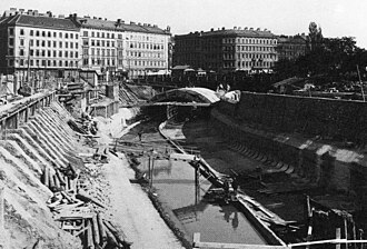 Die Straße selbst wurde im Zuge der Verbauung des Glacis 1860 entlang der linken Seite des Wienflusses angelegt und reichte ursprünglich nur von der Kärntner Straße bis zur Operngasse. Dort wo sich das ehemalige Gebäude des Österreichischen Verkehrsbüros befindet führte eine Brücke über den noch unregulierten Fluss, die zunächst Theatersteg, dann Schikanedersteg genannt wurde. 1862 wurde die Grenze zwischen dem 1. und 4. Bezirk entlang des Wienflusses festgelegt, der 1895 bis 1902 eingewölbt wurde. 1913 verlängerte man die Friedrichstraße bis zum Getreidemarkt.