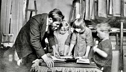 | Der österreichische Maler und Kunsterzieher Fritz Hafner (* 10. Dezember 1877 in Wien, Österreich; † 21. November 1964 in Juist, Ostfriesland, Deutschland) als Kunsterzieher in der Freien Schulgemeinde in Wickersdorf bei Saalfeld im Thüringer Wald, in der er von 1907 bis 1914 und von 1919 bis 1925 unterrichtete. Anschließend wechselte er mit Martin Luserke, Dr. Paul Reiner und Rudolf Aeschlimann zur Schule am Meer auf die ostfriesische Nordseeinsel Juist. | Private archive of Prof. Dr. Peter Dudek, Germany | Autor/-in unbekannt Unknown author | Datei:Fritz hafner wickersdorf.jpg | |