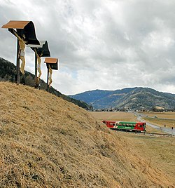 | Kalvarienberg in der Gemeinde Teufenbach-Katsch, östlich der Ortschaft Frojach. Im Tal ein Zug der Murtalbahn . | selbst fotografiert | Otto Schraubinger ( Diskussion ) | Datei:Kalvarienberg Frojach.jpg | |
