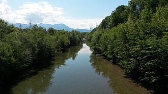 Frutz kurz vor der Einmündung in den Rhein (fotografiert von der Fahrradbrücke flussaufwärts) |