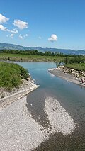 | Einmündung der Frutz in den Rhein bei der Fahrradbrücke bei Koblach | Eigenes Werk | Asurnipal | Datei:Frutzspitz.jpg | |